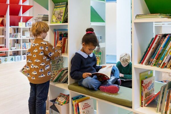 At Léopold Sédar Senghor School in Paris, Atelier Pierre-Louis Gerlier transforms a former storage room into an immersive library designed as a colourful learning landscape. The...
