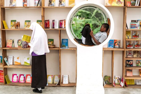 Architecture practice Parallel Studio has punctured the white walls of this children's library in Zanzibar with small holes, providing natural ventilation and casting shadows...
